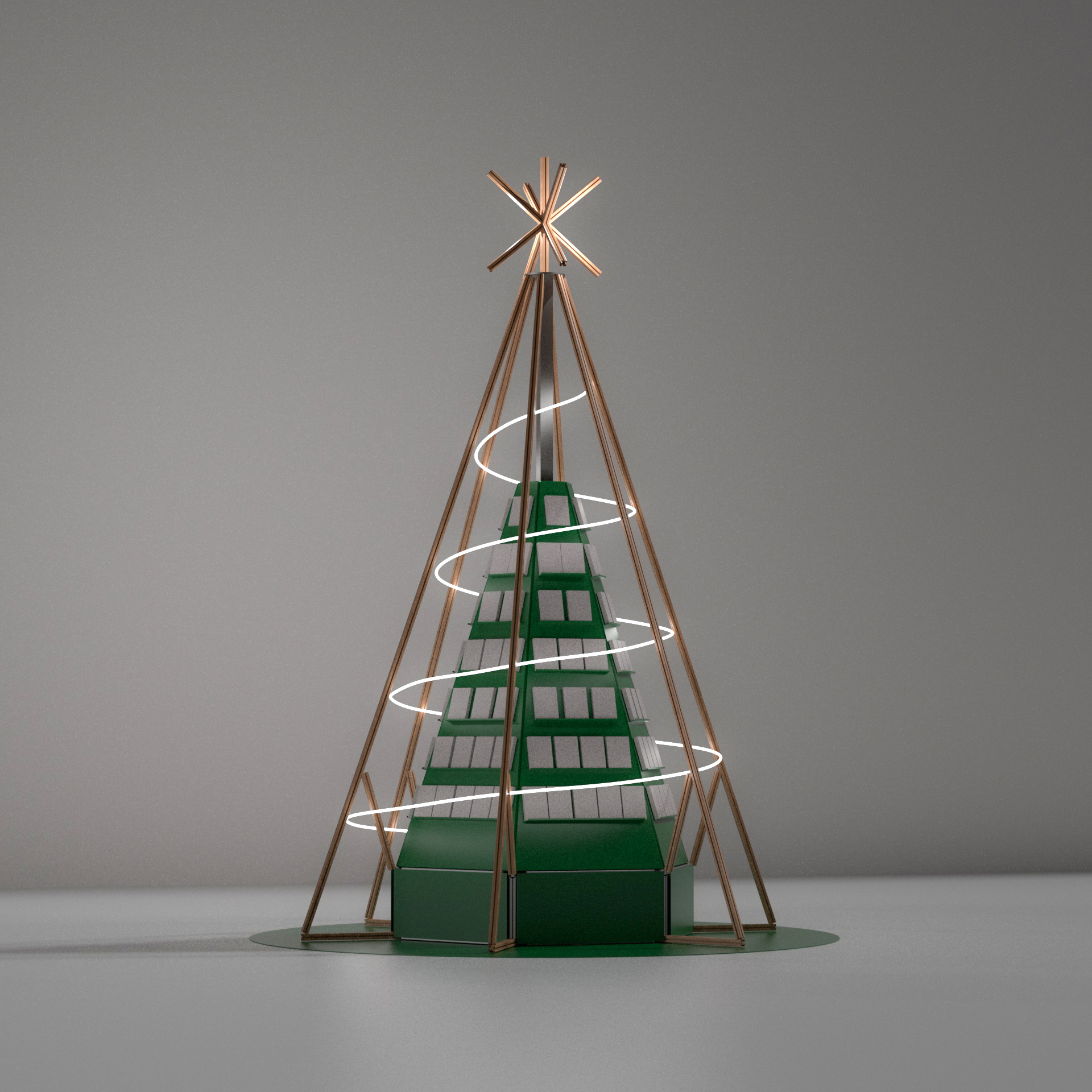 Ideato dai designer Gianluca Sigismondi e Stefano Bassan di Finemateria, con il supporto tecnico di Item, AlberoLibro si ispira al concetto di “capanna” delle architetture giapponesi, come rifugio simbolico per i libri. Una scultura luminosa e architettonica alta 5 metri, costruita con profilati in alluminio e materiali biologici riciclati, al cui interno si sviluppa una scalinata lignea: un percorso fisico e simbolico verso la conoscenza, dove ogni gradino rappresenta una tappa di crescita e scoperta. La struttura, pensata per essere smontata, riutilizzata e riconfigurabile, incarna i valori di sostenibilità, innovazione e design circolare, trasformando la tradizione natalizia in un’esperienza culturale contemporanea.