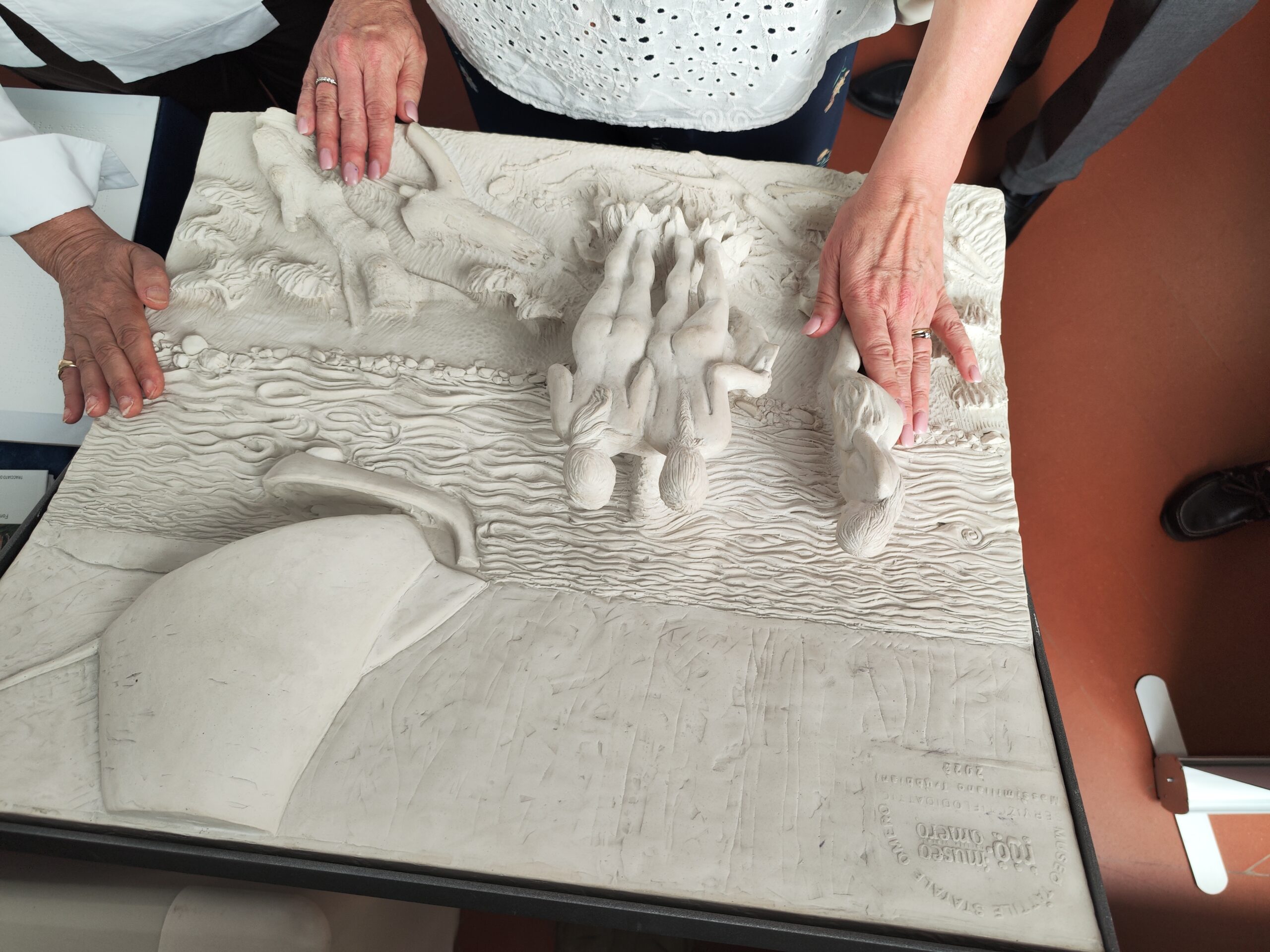 Realizzate con materiali misti, le tre opere tattili che arricchiranno l’allestimento del laboratorio furono finaliste all’edizione 2024 del “Premio Catarsini” per studenti di scuole medie superiori della Toscana, e tutte si ispirarono al medesimo dipinto dell’Artista, fornendo quindi oggi tre diverse reinterpretazioni della stessa opera.